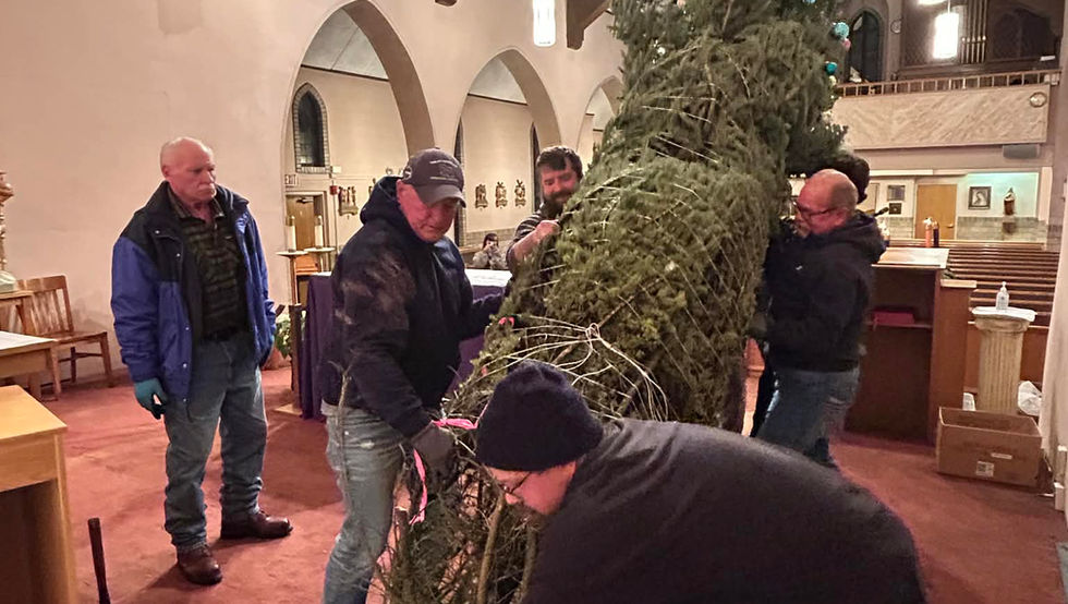 Trimming and Hoisting the Tree at Our Lady, Queen of Peace, and Decorating the Church